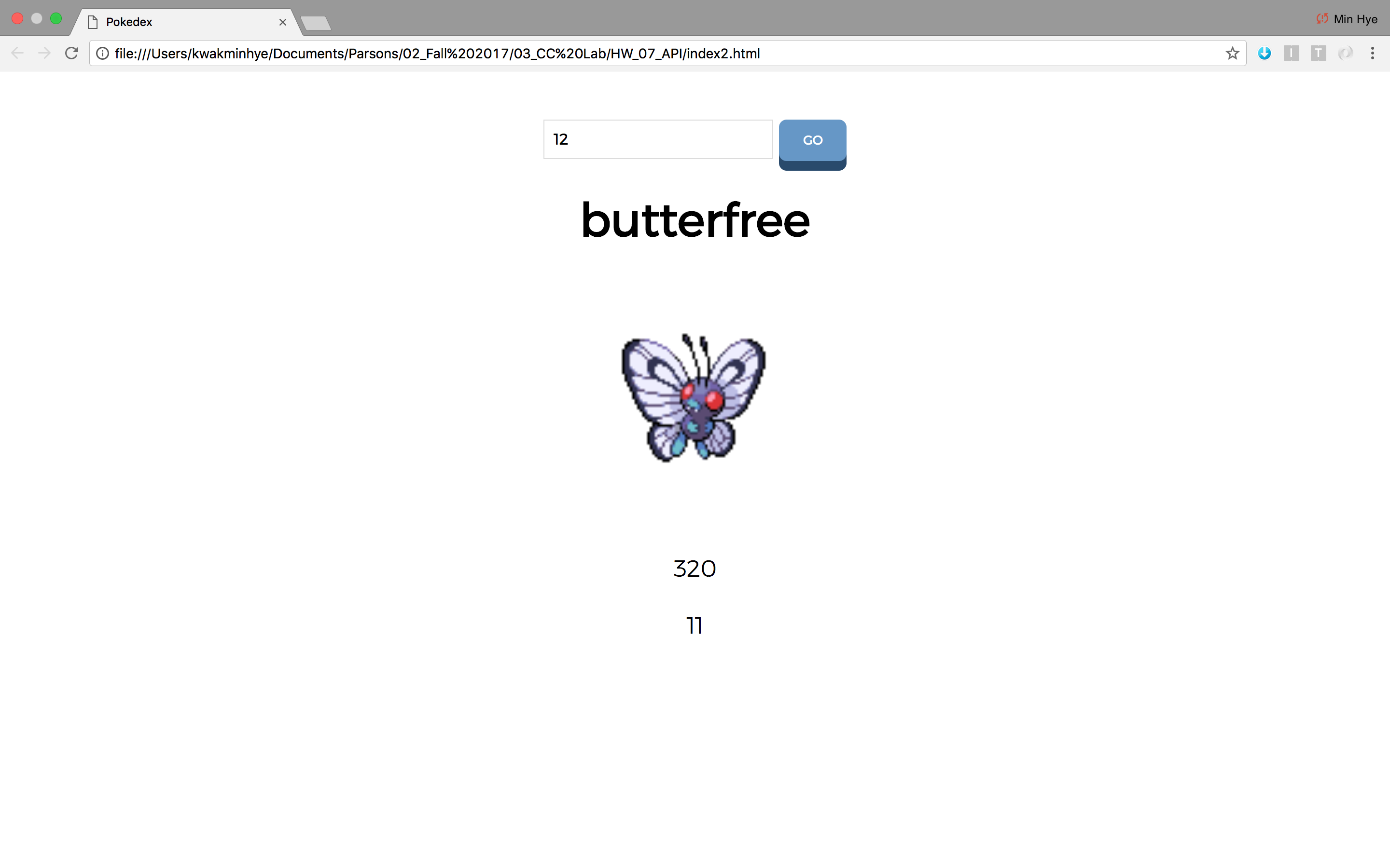 I made an web page by utilizing pokemon API. When the page is loaded, input box and button are in top of the page.
