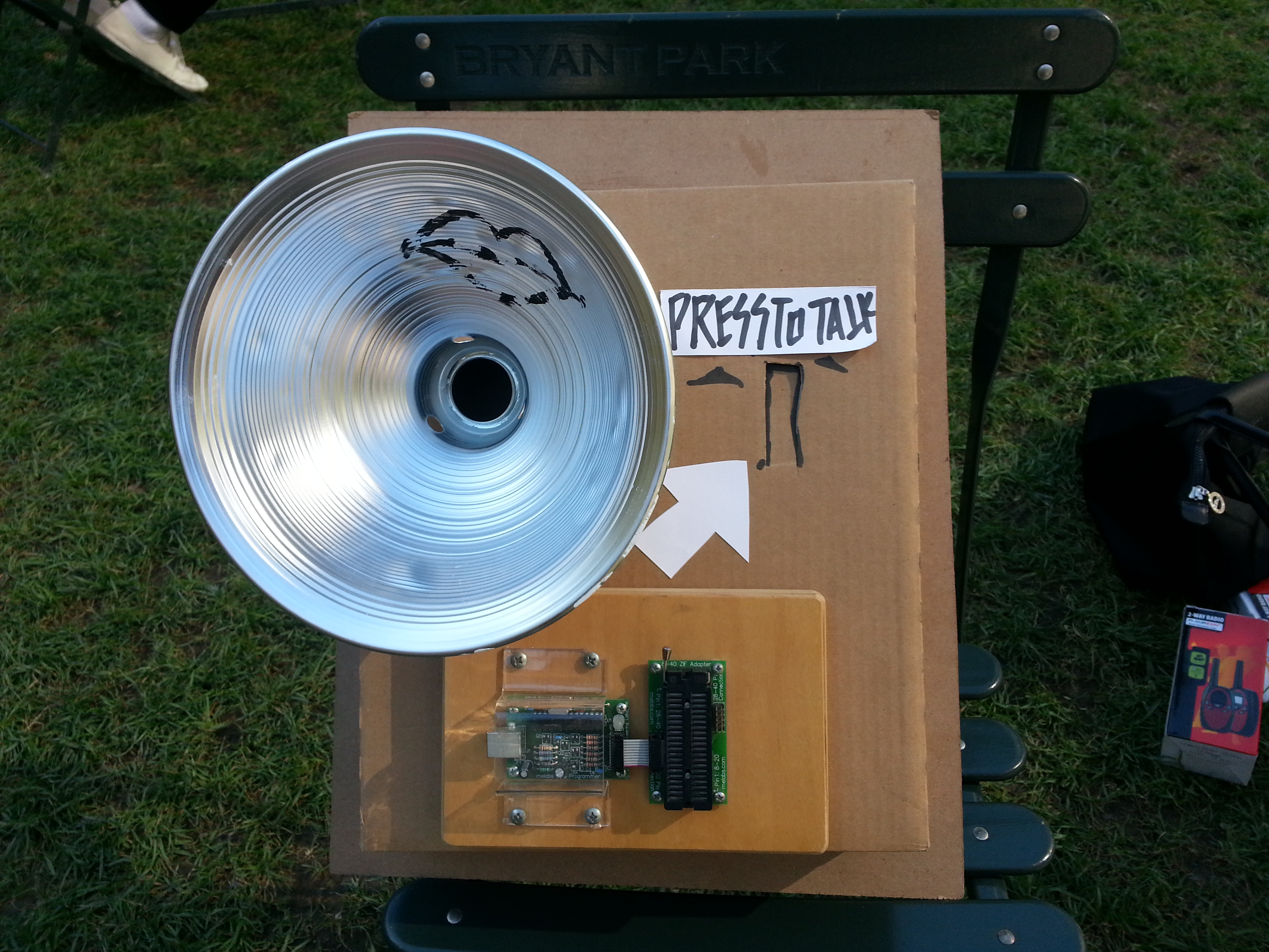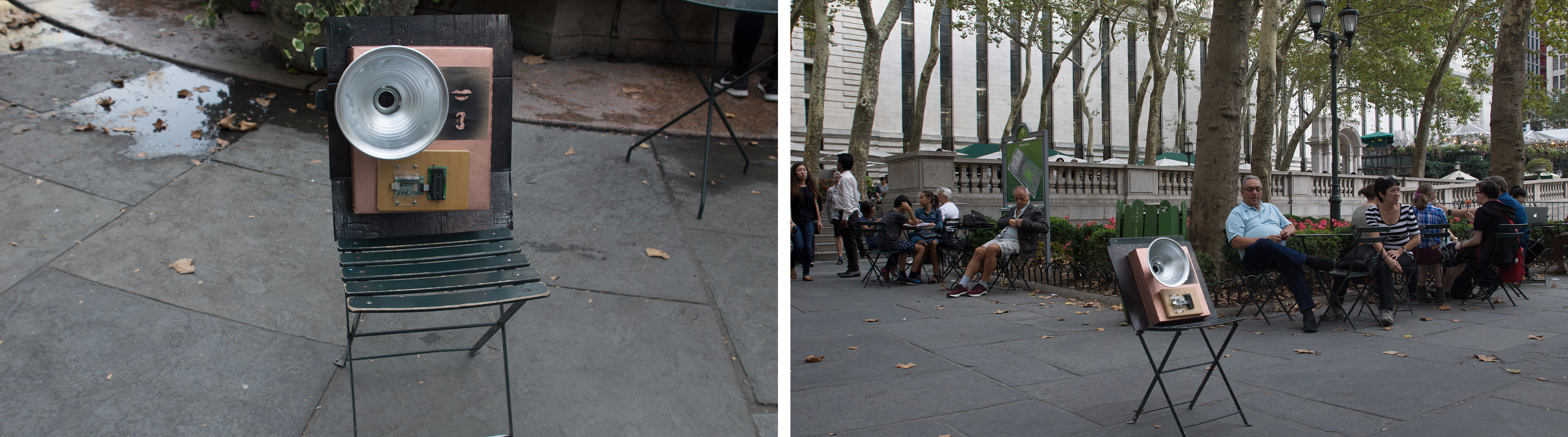 The purpose of this intervention project was to provoke communication between strangers. In order to make people in Bryant park communicate with the others they do not know, there was an attempt to produce "communication machine."
