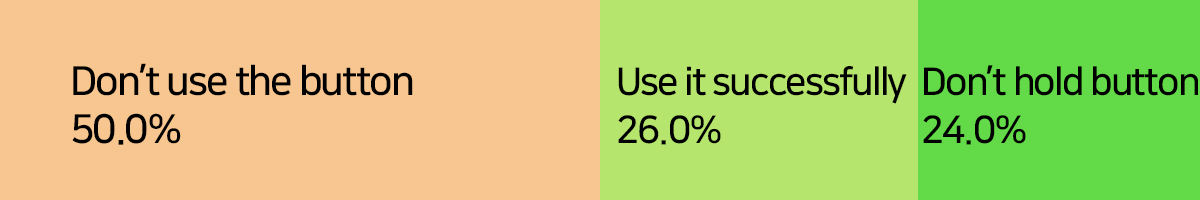 Like a graph above, among people who were actually talking to the machine, 50% did not use button, 24% did not hold button to talk, and 26% did use successfully.